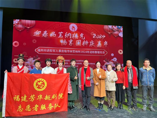 1月12日,由福州市退役军人事务局华林军休所主办,福建京剧院、福建芳华越剧院、福建民俗博物馆等单位协办的“迎春品茗纳福气 畅享国粹庆嘉年”2024年迎新春联欢会在福茗戏苑举办。芳华文艺志愿者为现场退役军人带来了越剧《杨开慧·忠魂曲》,慷慨激昂的演绎、悲壮感人的场面、视死如归的革命英雄主义精神让军休干部深受感动。经典传统越剧选段《孔雀东南飞·新婚情》则韵味别致,回味无穷,充分展示了越剧艺术的魅力,让军休干部充分感受到中国传统戏曲文化之美,获得响彻全场的热烈喝彩声。此次活动,丰富了退役军人的闲暇生活,感受戏曲的魅力,进一步增强了退役军人的幸福感。