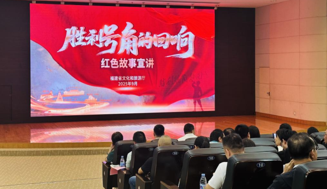 为深入贯彻落实习近平总书记关于“要讲好抗战故事,把伟大抗战精神一代代传下去”的重要指示精神,9月26日,福建省杂技团党总支组织党员干部及群众代表前往福建博物院学术报告厅参加由省文旅厅举办的“胜利号角的回响”红色故事宣讲活动。