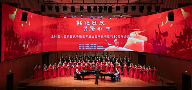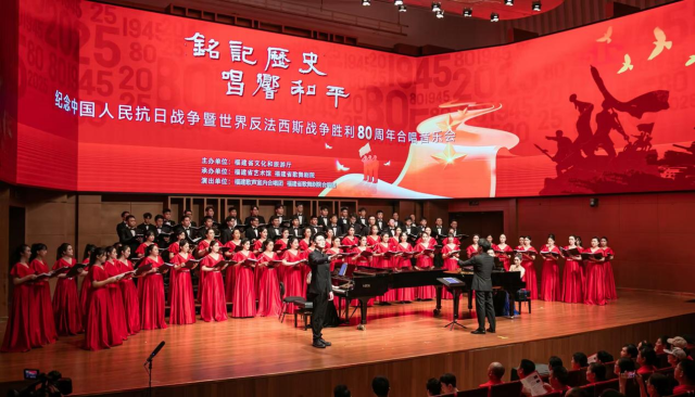 为纪念中国人民抗日战争暨世界反法西斯战争胜利80周年,弘扬爱国主义精神,传承红色基因,2025年9月20日晚,福建省文化和旅游厅主办,福建省艺术馆、福建省歌舞剧院联合承办的“铭记历史 唱响和平——纪念中国人民抗日战争暨世界反法西斯战争胜利80周年合唱音乐会”在福建大剧院隆重举行,以激昂的歌声讴歌伟大时代,抒发爱党爱国情怀。社会各界代表汇聚一堂,共同见证这一具有历史意义的时刻。