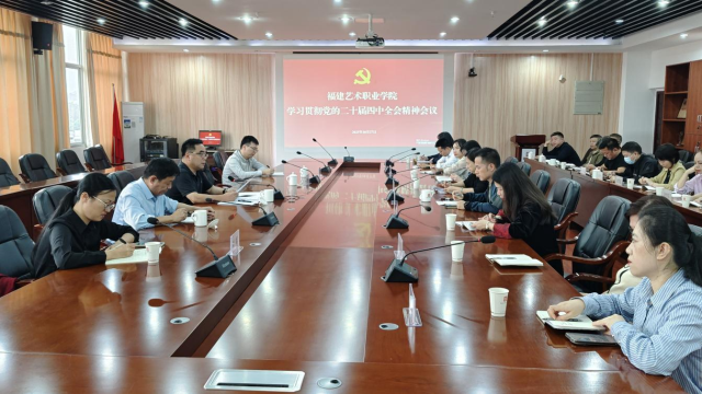10月27日下午,福建艺术职业学院召开党委(扩大)会议,深入学习贯彻习近平总书记重要讲话和党的二十届四中全会精神、省委常委会(扩大)会议、省政府党组会议、全省宣传思想文化系统会议以及省文旅厅党组(扩大)会议精神,部署学校贯彻落实措施。校党委书记陈晟主持会议并讲话。