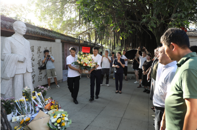 活动现场肃穆庄重,敬意凛然。首先,党员代表向吴石将军雕像敬献花篮,全体人员肃立默哀并深深三鞠躬,以庄重仪式寄托对革命先烈的崇高敬意与深切缅怀。随后,众人一同走进两进式木结构院落,参观故居内的历史展陈。在一幅幅泛黄的珍贵照片、一份份承载记忆的文献资料和一件件历经岁月的实物展品前,大家沉浸式了解吴石将军“心系统一、血洒宝岛”的传奇事迹,回溯其波澜壮阔的英雄历程。