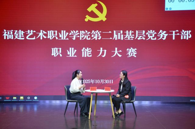 为深入学习宣传贯彻党的二十届四中全会精神,贯彻落实全国、全省高校党的建设工作会议精神,切实提升基层党务干部的履职能力水平,2025年10月23日至10月30日,福建艺术职业学院举办第二届基层党务干部职业能力大赛。大赛设知识测试、主题党日活动策划、微党课、谈心谈话四个赛项,全校120余名党务干部参加比赛。