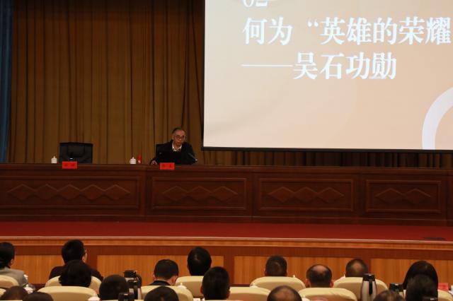 1月13日,福建艺术职业学院党委、闽侯县委在闽侯县会议中心大礼堂开展理论学习中心组联组学习(扩大)会,邀请福州市人大原二级巡视员、《沉默的荣耀》史实顾问、《冷月无声——吴石传》作者郑立老师作题为“隐蔽荣光——吴石烈士的传奇人生”专题讲座。福建艺术职业学院党委书记陈晟,党委副书记林俞坤,党委委员、纪委书记汤国荣,党委委员、副院长徐羽中,党委委员、组织统战部部长张灵健,党委委员、宣传部部长刘娜,以及党政办公室、纪委办公室、人事处(教师工作部)、学生工作部、马克思主义学院等部门负责人参加会议。会议由闽侯县委常委、宣传部部长刘钟主持。