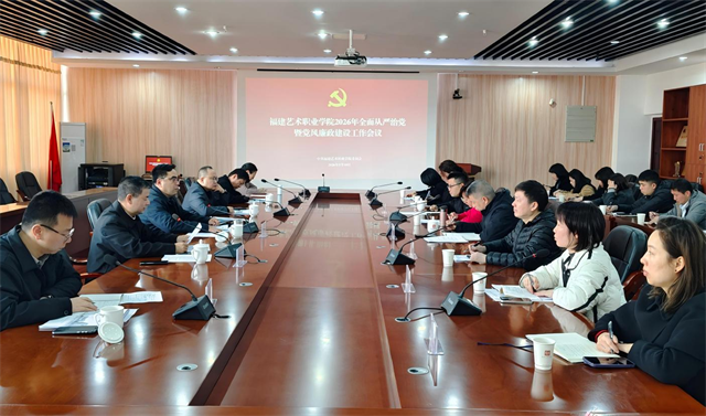 3月10日,福建艺术职业学院召开2026年全面从严治党暨党风廉政建设工作会议。校党委书记陈晟主持会议并讲话,校党委班子成员,校纪委委员、机关各处室党支部书记、各二级学院(部)党组织书记参加会议。