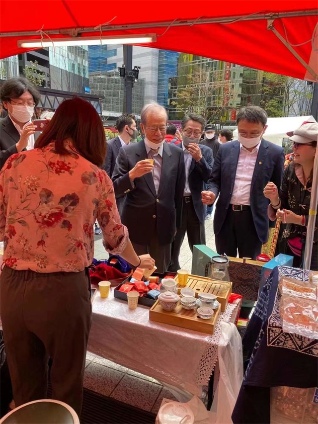 围绕中日邦交正常化50周年,组委会安排了中日大学生交流、中日文化交流等环节,并热忱邀请中日两国歌手、舞蹈团体到场表演互动,活动现场气氛热烈。会场还专设有展现中国地方特色文化的省市展位,福建旅游海外合作推广中心(日本站)积极参与,身着福建特色服饰,向日本民众及海外华侨华人宣传介绍福建民俗风情及文化旅游产品,大力推广“清新福建”“全福游、有全福”“福文化”品牌。日本前首相福田康夫在东京中国文化中心主任罗玉泉陪同下,饶有兴致驻足福建展位,品尝福建特色名茶——福州茉莉花茶,并赞不绝口。