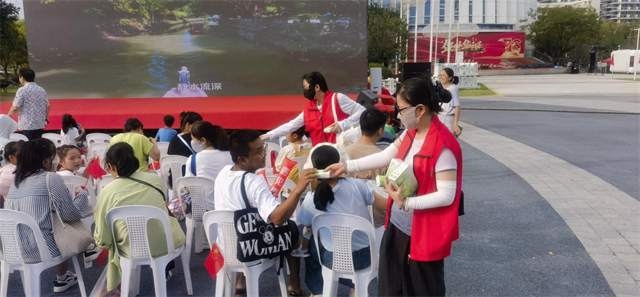 “双节”未至,文明先声已传。9月27日晚,由省委宣传部指导、省文旅厅精心打造的“周末戏相逢”活动(2025年省委、省政府为民办实事项目)之杂技专场,在福州西湖公园林则徐广场热闹开演。演出启幕前,福建省文旅系统的志愿者们已提前到位,向驻足等候的观众递上精美的宣传册与纪念品。在期待杂技盛宴的轻松氛围里,志愿者们用通俗的话语讲解文明旅游要点,同时还广泛普及了垃圾分类、禁毒知识、移风易俗等文明理念等理念,让文明随宣传册一同传递,实现艺术享受与文明倡导的自然融合,为即将到来的“双节”假期预热文明新风。