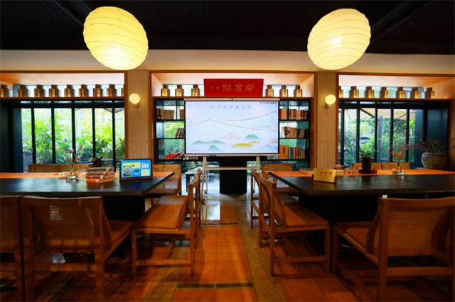 “八闽书房”公共阅读新空间·熹茗福建茶馆毗邻福州温泉公园,在这里,温润茶汤与清雅墨香交织相融,将“八闽书房”沉浸式文化体验巧妙融入日常品茗之中。读者可于静谧一隅,悠然感受茶韵书香、品味阅读之美。欢迎游客、市民到此体验“八闽书房”优质文化服务。