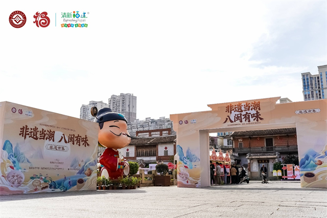 在“茶韵新潮·青春回甘场”,游客们不仅能够品鉴福州茉莉花茶、安溪铁观音、武夷岩茶(大红袍)、漳平水仙茶、正山小种红茶、平和白芽奇兰等六大福建非遗名茶,还可在新式调饮中感受传统茶艺与现代美学的完美融合。在“福礼满载·年味匠心集”,福州同利肉燕、同安封肉、莆田红团、白水贡糖、顺昌灌蛋、闽东畲族乌饭等非遗年货美食满足了味蕾,更传递着浓厚的“福”文化。在“烟火焕新·八闽潮味集”,漳州麻糍、闽南土笋冻、烧仙草、永定牛肉丸、漳州老金枣、芦溪咸菜、闽南米浆花生、明溪肉脯干等市井非遗美味在古城中圈粉无数。三大主题板块各具特色,既有深厚文化底蕴,又充满时代活力,仅11月28日晚就吸引了4万余名游客驻足参与。