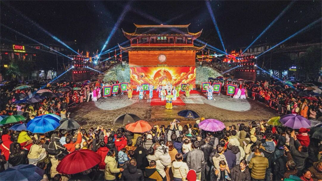 2月17日晚,龙岩市长汀古城三元阁广场人潮涌动,一场以“烟火汀州·开城迎宾”为主题的沉浸式新春盛典精彩上演。作为春节系列活动的核心环节,开城仪式以非遗汉剧为魂,再现了千年古城的盛世气象,为市民游客献上了一场融合历史底蕴与现代活力的文化盛宴。