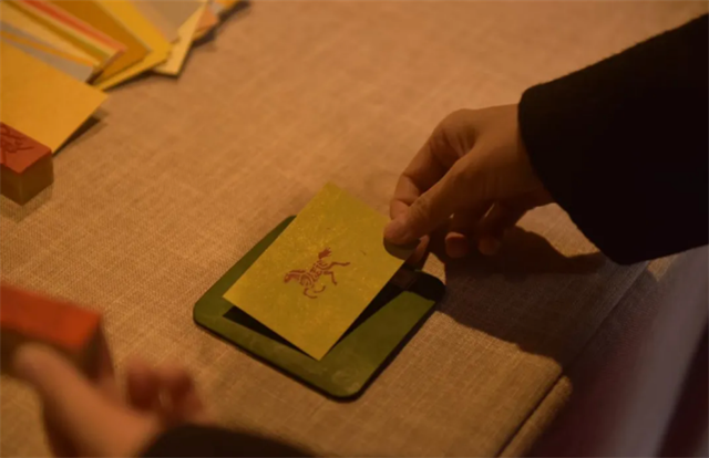 展览现场最受欢迎的当属“拓福钤马”互动体验区。观众们排队等候,亲手体验用八宝印泥拓印福字与骏马图案,把“马上有福”的美好寓意带回家。八宝印泥作为中国传统文房珍品,朱红鲜润、历久不褪,为新春的祝福增添了一份典雅与厚重。