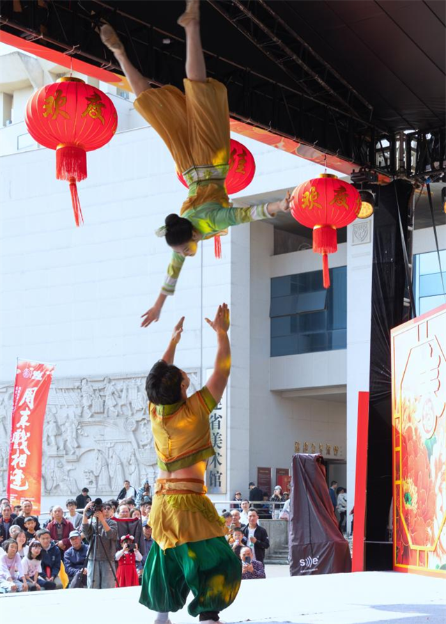 杂技演出在喜庆热烈的氛围中拉开帷幕。福建省杂技团演员们以精湛技艺将力量与美感、传统与创新完美融合,赢得全场阵阵掌声与喝彩。湖光山色与舞台光影交相辉映,市民游客沉浸在视听盛宴之中,尽享公益文化惠民带来的新春喜悦。