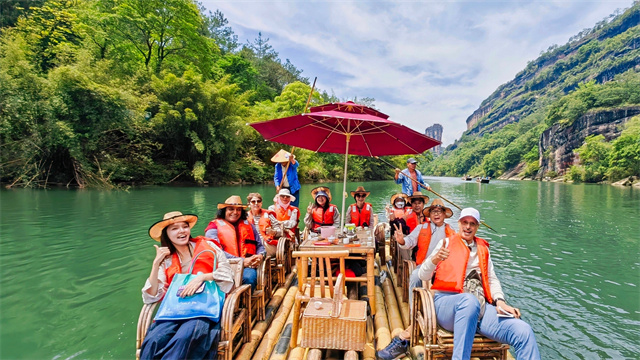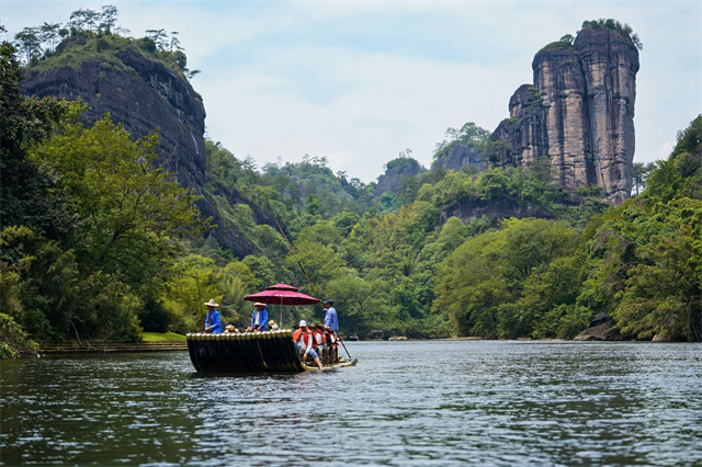 此后,代表团一行搭乘竹筏,沿九曲溪顺流而下,感受朱熹笔下“武夷山上有仙灵,山下寒流曲曲清”的绝美意境。碧水萦回如练,丹崖叠翠含烟,艺术家们纷纷举起相机,记录独特的丹霞地貌和古老的摩崖石刻。在“奇秀甲东南”的武夷胜景中,中外艺术家互相交流创作设想,听着古老的悬棺故事,应和着悠扬的武夷山歌,从自然与人文之美中汲取创作灵感。