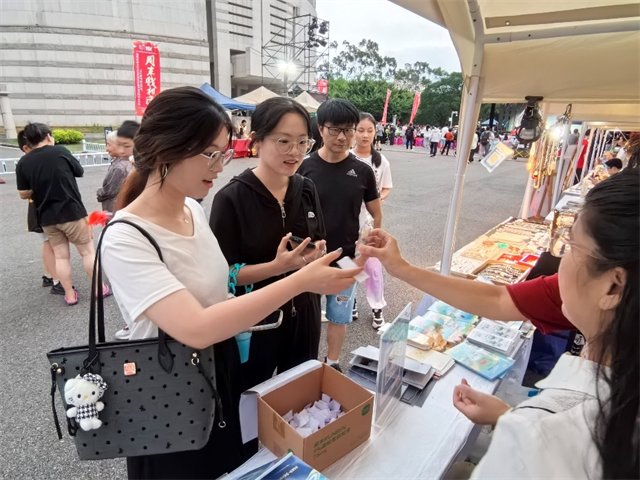 活动现场,福建文旅品牌宣传推广展台开展了扫码送礼、旅游服务咨询和互动小游戏等活动,同时为现场市民、游客发放旅游宣传资料和宣传品,吸引了不少市民、游客驻足围观、积极参与互动。文旅企业展位星罗棋布,福州有福同享文化创意有限公司、福州知赏文房文化传播有限公司等企业展销“福建礼物”文创获奖产品,产品销售火爆;福州首开君澜温泉酒店、福州日溪峡谷瀑布景区管理有限公司等企业现场售卖旅游产品和线路,向市民、游客展示福建的山川之美;闽派工艺美术发展中心、兰兰银饰展位人头攒动,为市民、游客带来非遗工艺的展示和精美银饰的呈现;福鼎鸡翅、绿豆冰沙等美食企业让市民、游客在欣赏美景的同时,感受福建美食的魔力。
