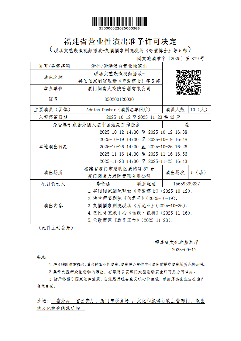 - 文 号: 闽文旅演准字〔2025〕第379号
