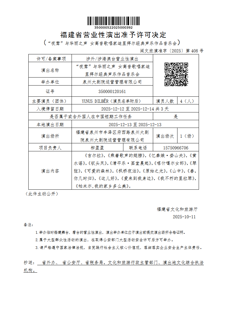 - 文 号: 闽文旅演准字〔2025〕第408号