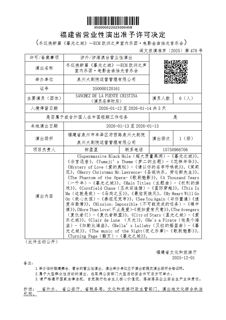 - 文 号: 闽文旅演准字〔2025〕第478号