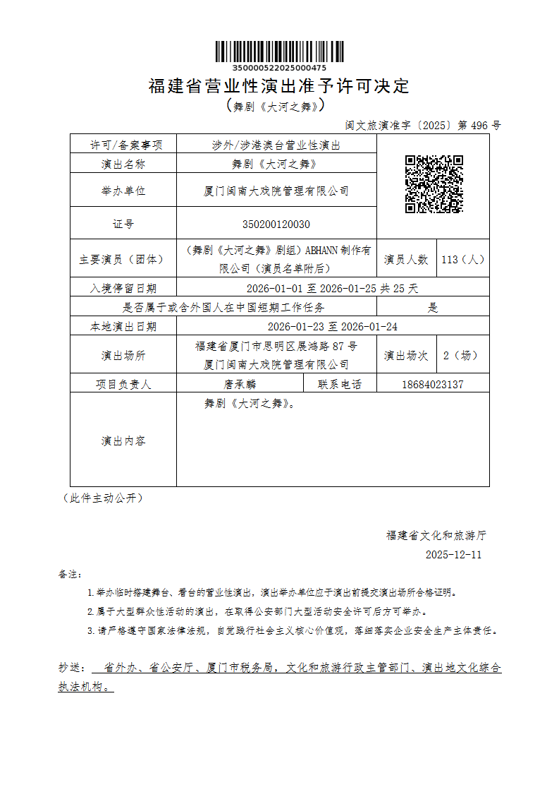 - 文 号: 闽文旅演准字〔2025〕第496号