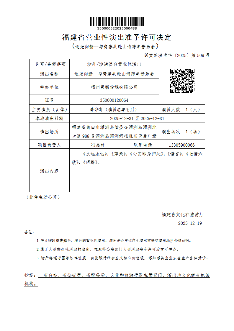 - 文 号: 闽文旅演准字〔2025〕第509号