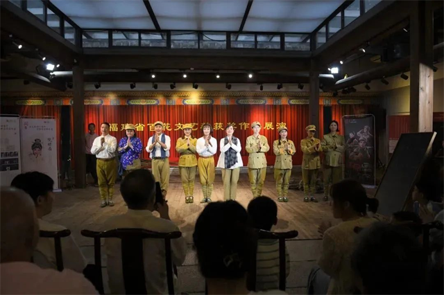 10月1日国庆节当天,福建省实验闽剧院艺术总监、一级演员、梅花奖获得者陈琼、国家一级演员江忠岩、倪爱民、肖翠云及优秀青年演员林青霞以闽剧《生命》选段,于三坊七巷海峡民间艺术馆参加福建省百花文艺奖获奖作品惠民展演,上午、下午共计演出四场,在祖国74周年华诞送上充满闽韵的祝福。