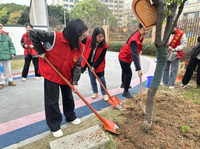 3月11日,在第47个全民义务植树节到来之际,福建芳华越剧院党员志愿者参加福建省文化和旅游厅联合驻地温泉街道河东社区、福州教育学院附属第一小学等单位共同开展“兰馨校园绿意盈 巧手植树‘慧’实践”主题学雷锋义务植树活动。此次活动旨在深入践行习近平生态文明思想,积极响应国家全民义务植树的号召,落实模范机关和文明单位创建有关要求,强化“近邻党建”,促进共建共治。