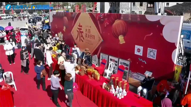 活动现场还设置了物产展示区,李干、梅子、柿饼、山茶油、青梅酒、绿茶、藤编……好物产琳琅满目,主持人与物产介绍人一一展示,让观众体验永泰“春品青梅夏尝李,秋食柿饼冬赏花”的美好生活。此外,演出现场还向观众介绍了永泰独特的民俗文化——嵩口春宴。