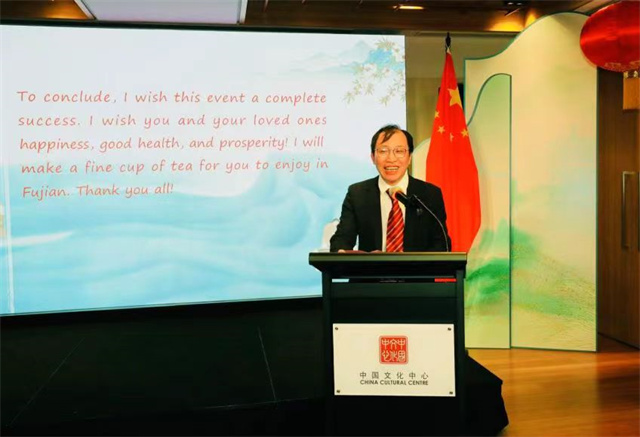 肖长培副厅长在致辞中表示,茶是中国人的独特发现,代表了中国的文化美学,也是中国人的一种生活方式和中国和合天下的桥梁。福建是中国茶文化最重要的发源地之一,福建茶拥有制茶历史最悠久、产量和出口量最大、种类最多、品质最好、最有故事、对世界贸易和茶文化的影响最深刻等6个全国“第一”。举办此次茶和天下·雅集暨“海丝起点 清新福建”文化旅游推介会,就是要通过以茶会友,以茶为媒,讲好“一片神奇的东方树叶”和清新福建的故事,茶和天下,增进与世界各国包括澳大利亚各界民众的心灵契合,为深化各领域合作、构建人类命运共同体贡献福建文旅力量。同时盛情邀约澳大利亚各位朋友走进清新福建,共品制茶历史最悠久、品质最优、最有故事、茶文化最厚重的福建好茶,共创两地文旅合作的美好明天。