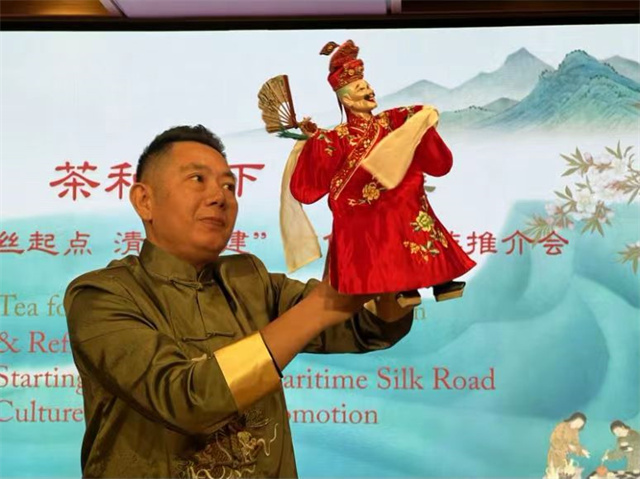 福建省非遗代表性传承人陈黎晖进行布袋木偶戏表演