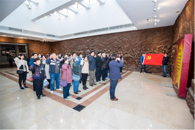 “我志愿加入中国共产党,拥护党的纲领,遵守党的章程……”参观活动开始前,党员们面向党旗庄严宣誓,重温入党誓词,立下自己对党忠诚的誓言,坚定共产党员的初心。