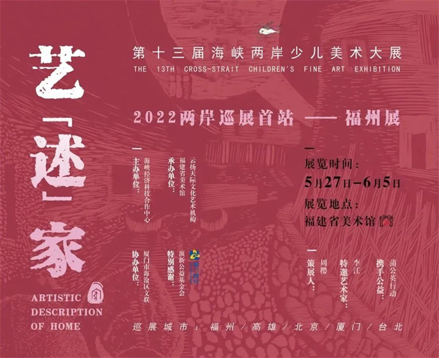 今年六一,跟着海峡两岸的小朋友,一起回“家”看看吧!以“艺‘述’家”为主题,汇聚了来自大陆三十一个省市区和台港澳地区描绘家乡作品的第十三届海峡两岸少儿美术大展,两岸首场巡展5月27日在美术馆开展,展期至6月5日。