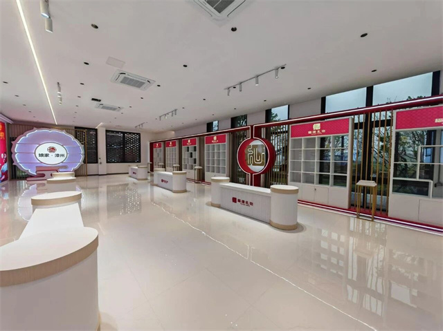 福建礼物漳州馆坐落于龙江岁月景区稻田街区段,依托九龙江畔得天独厚的滨江文旅资源,有效丰富景区文化业态,为漳州文旅融合发展注入强劲动能。场馆空间以中国红与雅致白为主色调,巧妙融合闽派建筑飞檐、窗棂等经典符号,兼具传统底蕴与现代美学。整体布局从入口文化序厅延伸至分区城市展陈,再到互动体验区,形成一气呵成的观展动线,让游客在沉浸式体验中尽览闽南文化风采。
