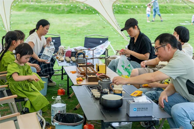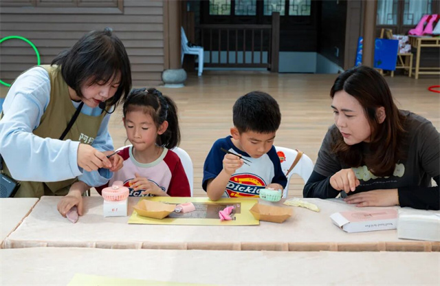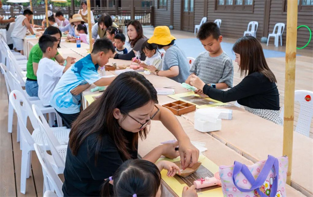 宝珠岛东侧广场上,绿草如茵,江风拂面。五彩风筝在蓝天飞舞,棋局对弈老少皆宜,茶香袅袅中家长品茶闲谈,孩子们追逐嬉戏,绘就一幅温馨的春日家庭画卷。古窑遗址区内,红砖古厝间书香氤氲。插花、葫芦螺钿、非遗竹编、手提花篮等手作体验吸引众多游客驻足。在老师指导下,大家以手作之名赴匠心之约,亲手触摸闽南文化的温度。